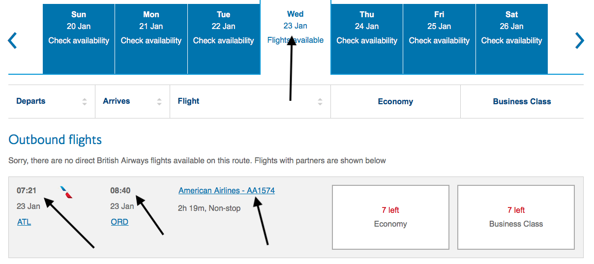 Yup, you got it. British airways is cheaper! However, the best part is that the flight is operated by American Airlines. That’s right…the 7:21AM flight is THE. SAME. EXACT. PLANE. that you would have used 12,500 miles if you would’ve booked through American.