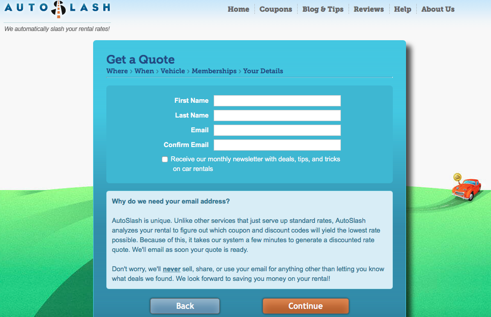 Immediately, I thought all of my problems were solved. If you give me a quote then I will know my final price. The icing on the cake is Autoslash tracking my rental and finding a cheaper price.