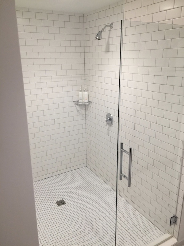 This photo does not capture the scale of this shower. I did not measure it but I would estimate that it was 7×7 feet. It was large!