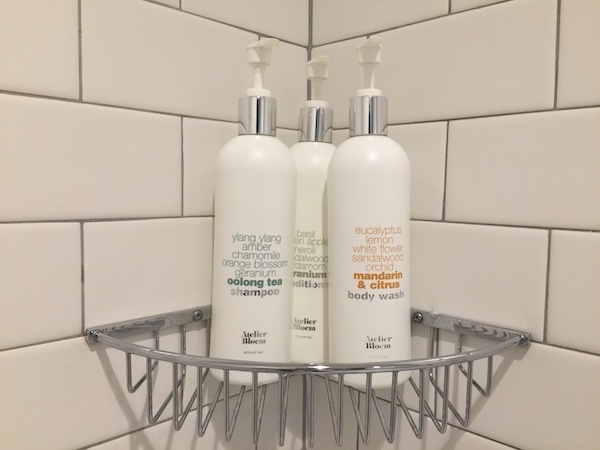 The bathroom was stocked with Atelier Bloem products.