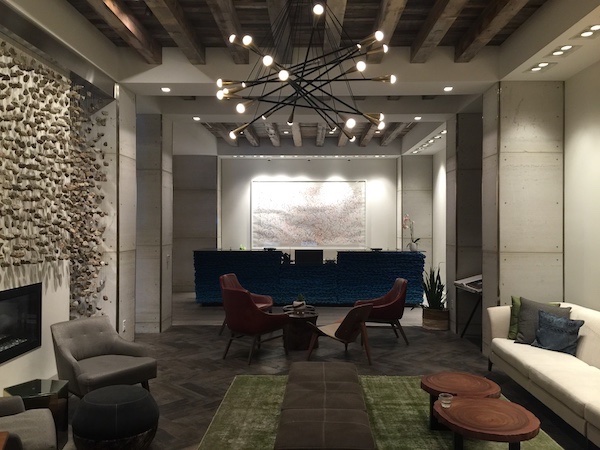 Every night the Kimpton has “social hour” where guests can…well, be social. Free cocktails are offered and there are a plethora of comfortable seats so you can relax. As we entered the hotel, we walked directly into, perhaps, 30+ individuals socializing in this space. The photos below were taken at a later time…
