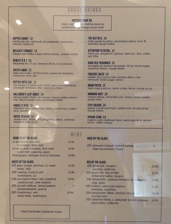 As expected, the prices for Henley are on-par with most hotel restaurants…