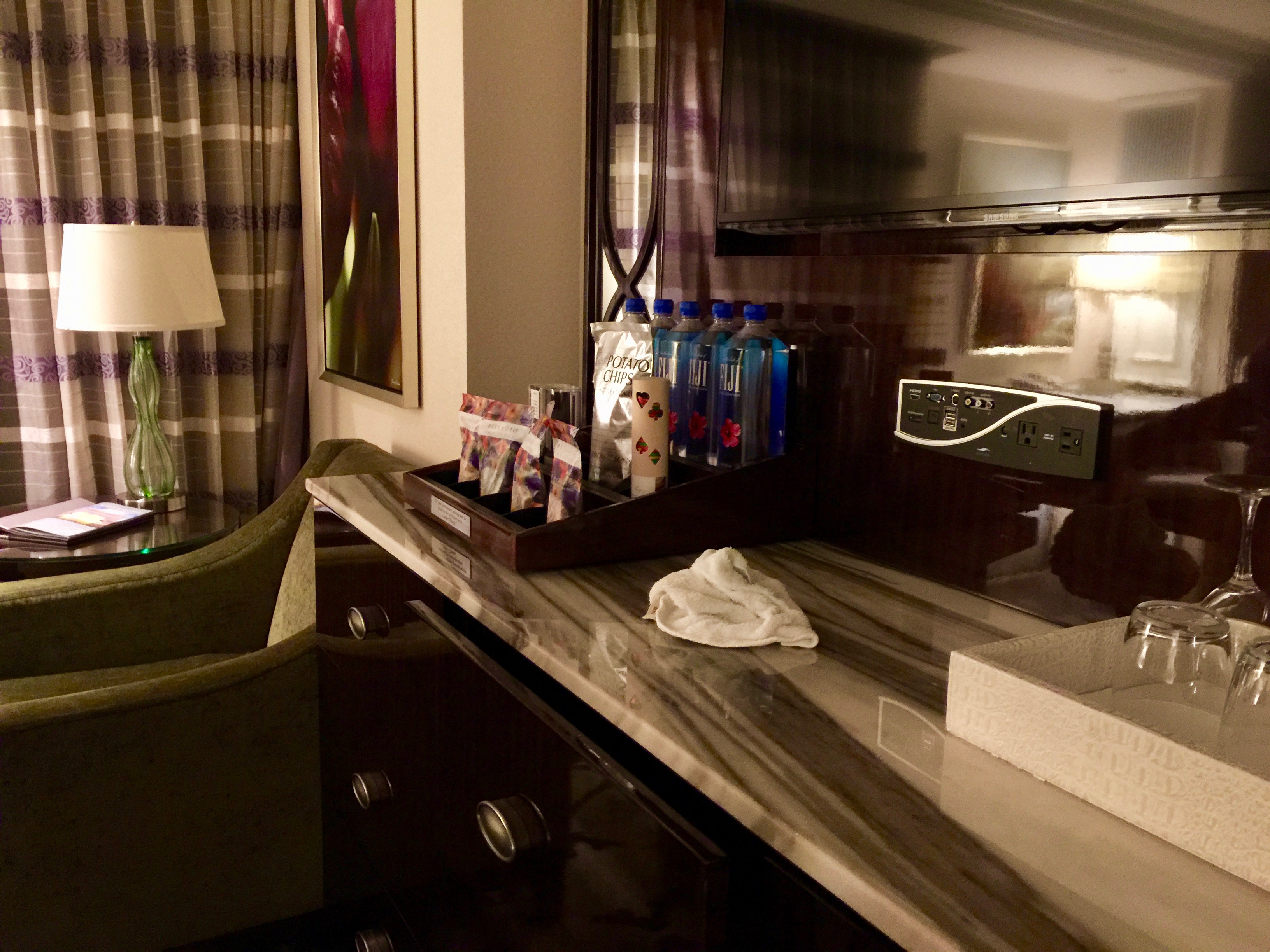 The mini bar and snack bar were well stocked (and similar to most things in Las Vegas…expensive).