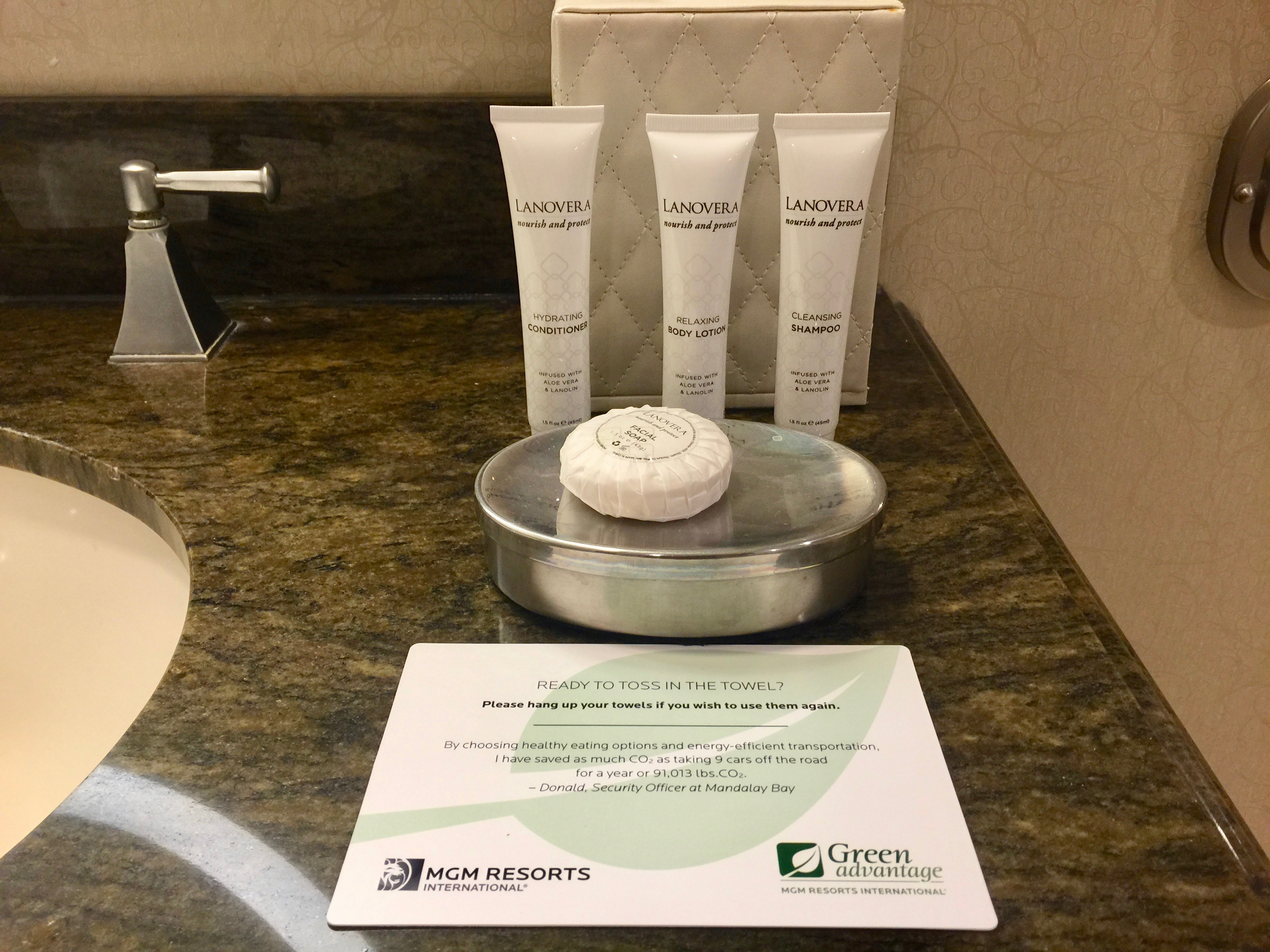 The bath amenities were the Lanovera brand from Australia. Typically, the brands used in the hotel aren’t made for my skin so I have very little use for them but I did not recognize the brand and would’ve expected The Bellagio to have used a brand with a bit more brand recognition.