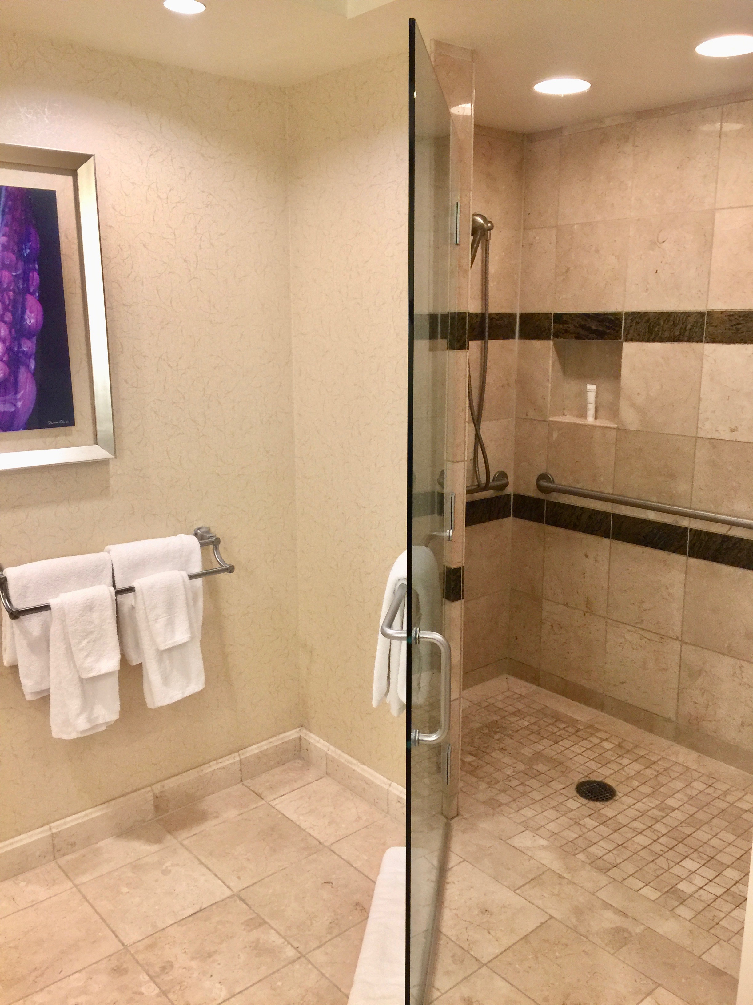 The bathroom was surprisingly large, however, when you’ve stayed in other luxury hotels, you begin to take notice of the details. For example, the faucets looked like they could have been used at the Luxor (no shade but an observation. I’ve stayed at the Luxor many times). In fact, everything in the room seemed a bit haphazard. For example, I stepped out of the shower and noticed there was more water outside the shower than inside the shower and a “lake” had formed in the middle of bathroom.