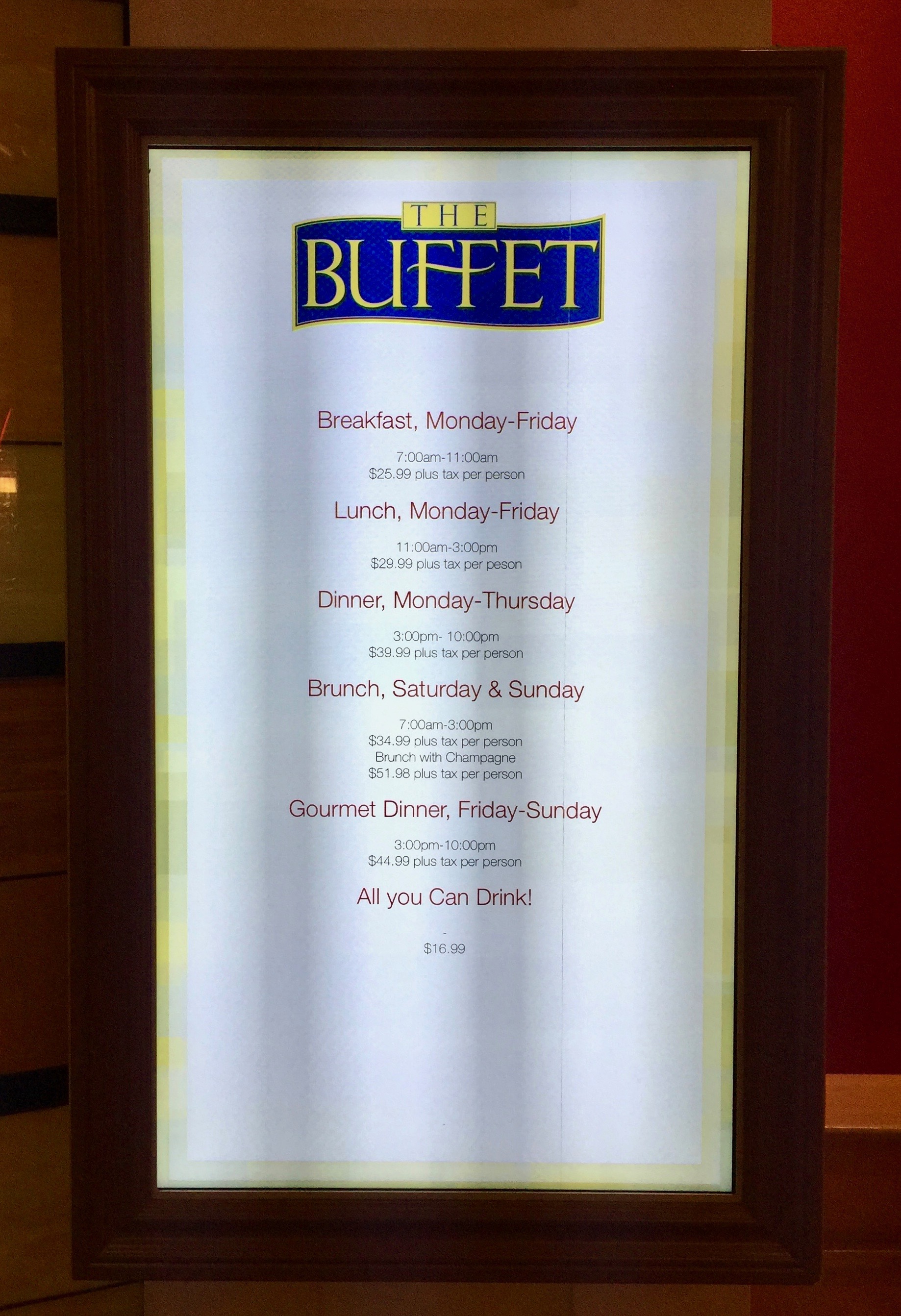 - Restaurant / Food Score – 5 – Eating breakfast at The Buffet was the only experience of eating at the hotel. Unfortuantely, that experince was extremely uninspiring so we did not utilize the hotel restaurants but ventured to others hotels for our meals.