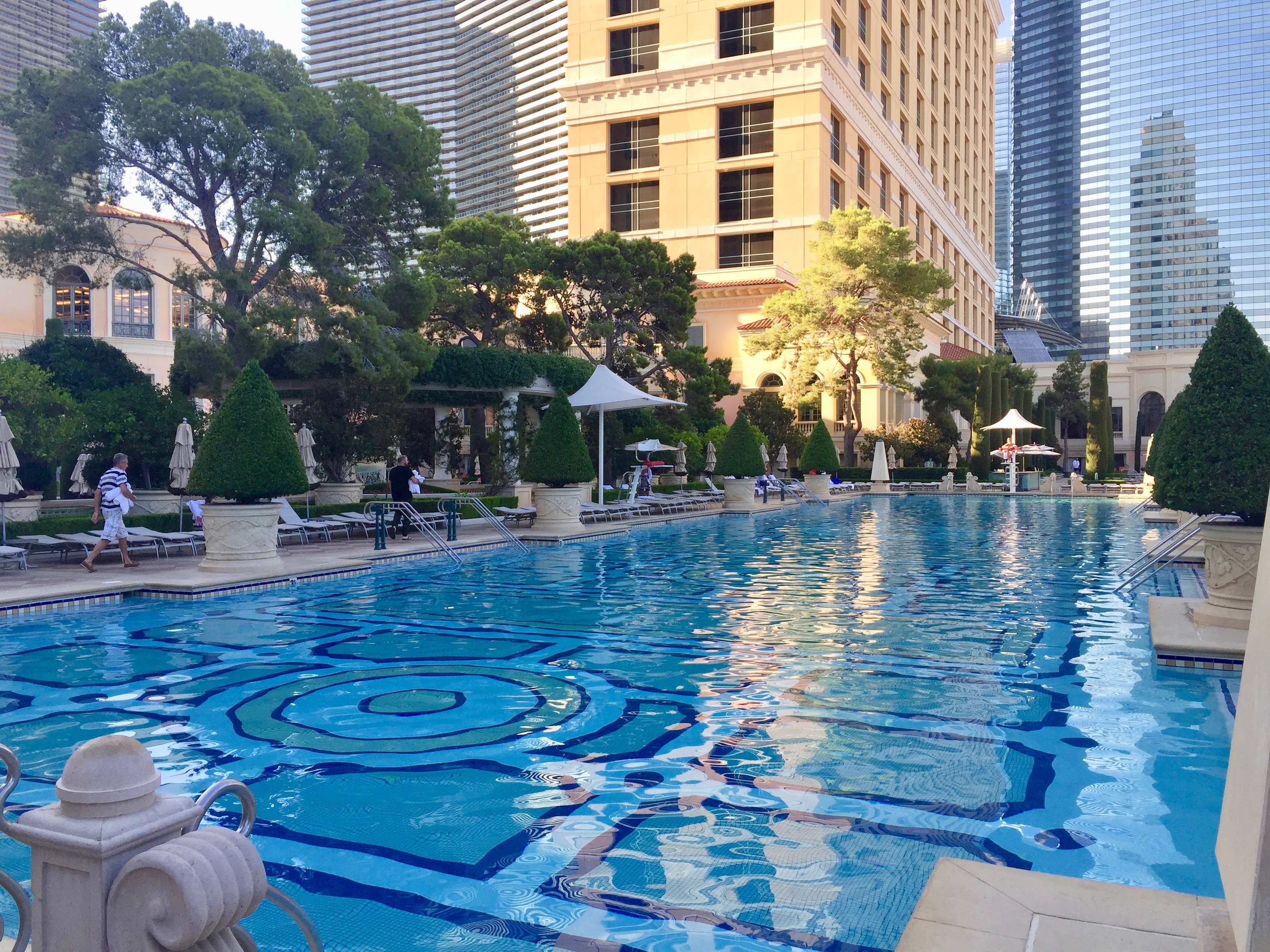 Similar to most mega resorts in Las Vegas, the pool deck has multiple shallow pools surrounded by lounge chairs. There were a number of day beds and cabanas available to rent, and also a separate pool area with standard lounge chairs that required an admission fee.