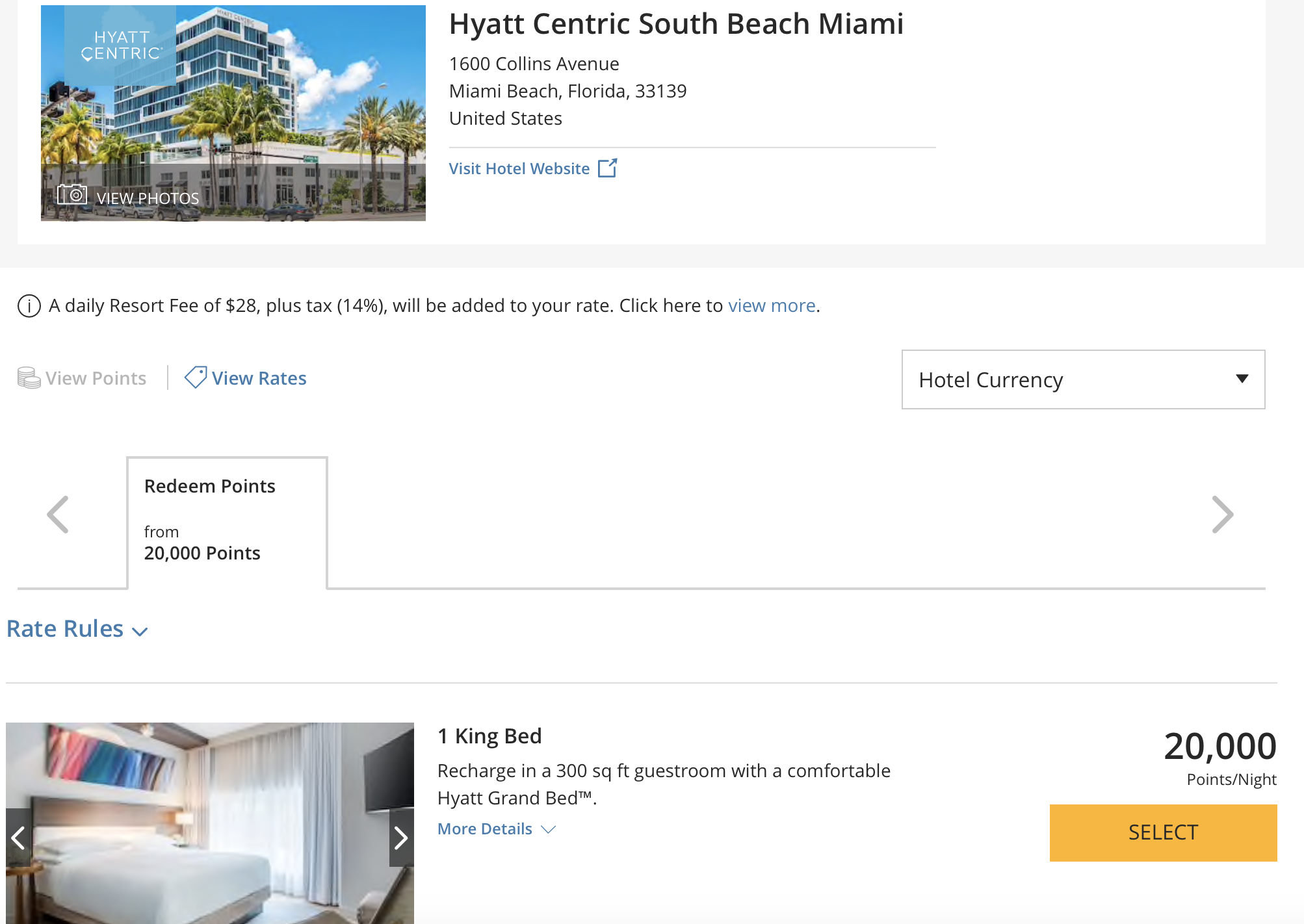 Perhaps, you are not interested in flying 10 hours to Hawaiian beaches so you plan a road trip to Miami. 20,000 points per night will put you in the heart of South Beach. READ THIS REVIEW.