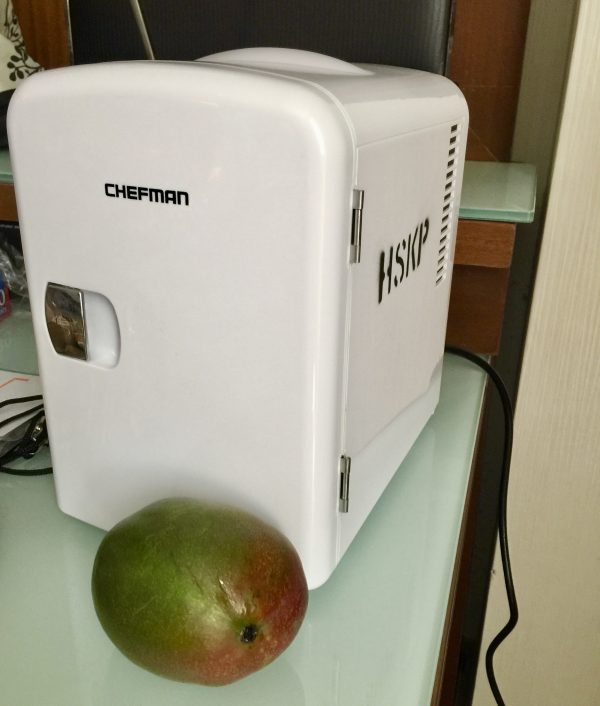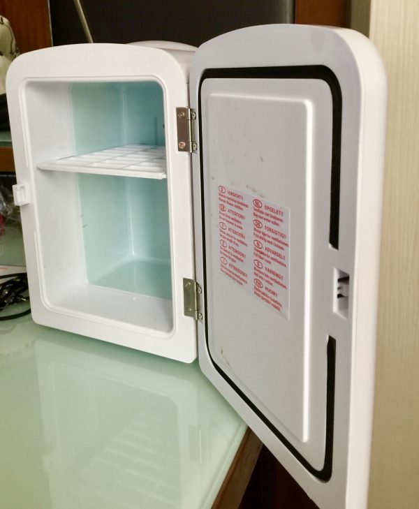 I requested a refrigerator and a few minutes later it was delivered to my room. The fridge was approximately 7 inches tall and 10 inches wide. It was not, exactly, what I was expecting but it did the job.