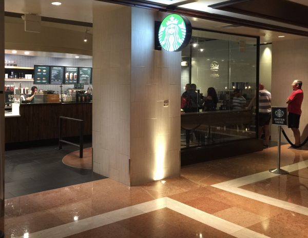Caution: A tall Vanilla Latte (which is the smallest) is $6.75. If you need your coffee, arrive early. The line quickly snakes around the corner during breakfast time. This photo was taken at 5:30am (on the second day of my stay) and has approximately 15 people in line.