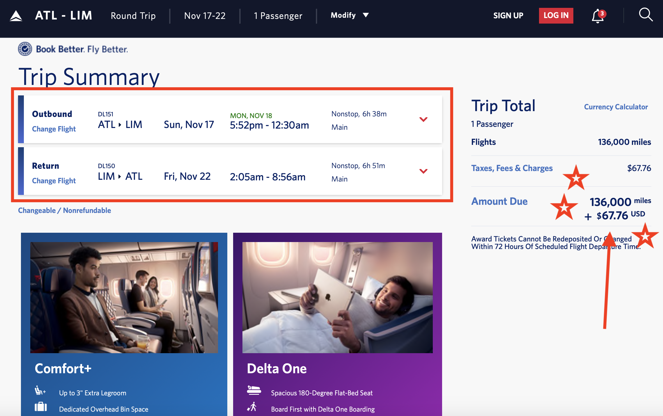For comparison, let’s go see what Delta requires for the EXACT SAME FLIGHT on the EXACT SAME PLANE…