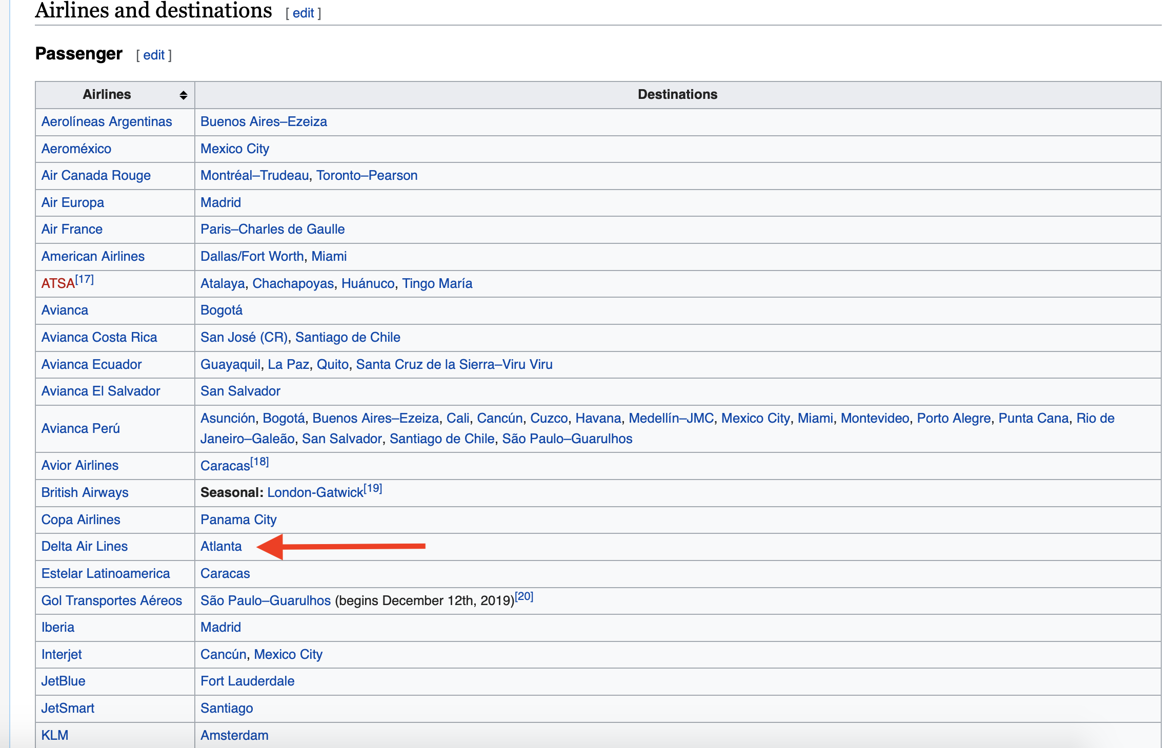 After I search for the Airport, I select the ‘airlines and destinations’ link.