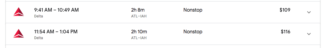 I will be positioning from Atlanta to my departure city (Houston). I began to research one-way flights only to find I had two “competitive options:”