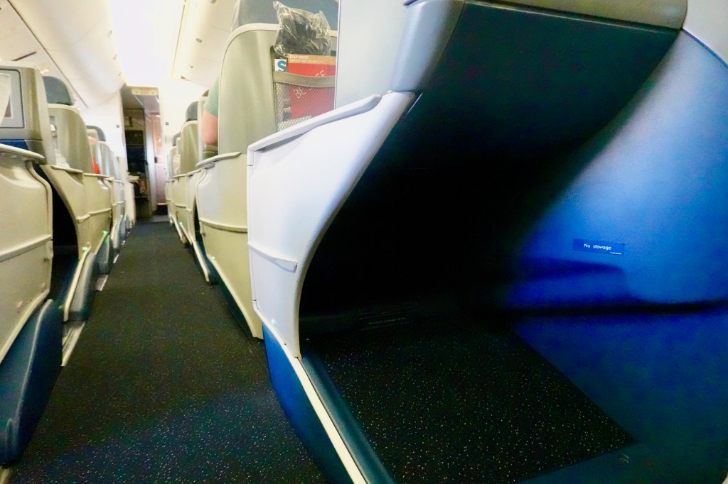 Seats are in a staggered 1-2-1 configuration. On the plus side, every seat has direct aisle access. However, given the 767 isn’t a wide plane, the seats feel extremely narrow.