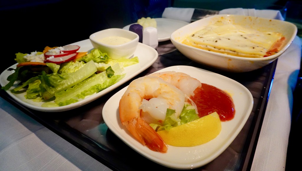 When I returned our meals had been served. As you can see, I ordered the Roasted Lemon Chicken (and a very sad salad) and my wife ordered the Fresh Mozzarella Lasagna. This was extremely disappointing for me because I am vegan so I was limited in my options. I was told by the flight attendant that I should have received an email 24 hours before the flight where I could’ve selected a “vegetarian option” but a vegetarian option (particularly at this point) isn’t very helpful.