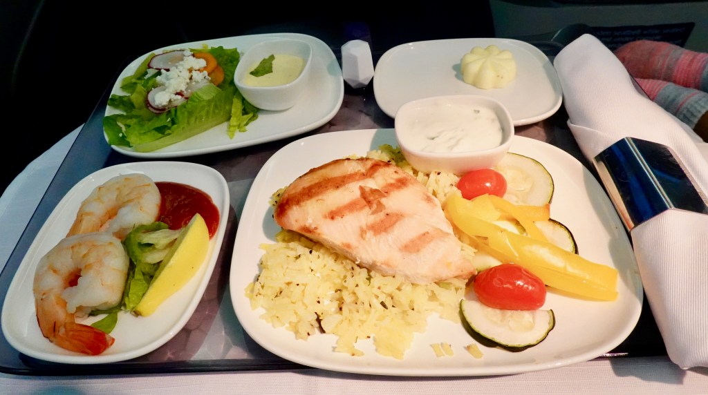 Delta, as an airline, excels at most things (on-time performance, amenity kits, etc.). However, the meal service was lackluster, the Delta staff had great intentions but were not very attentive, and not as good as I’ve become accustomed to on Delta. The seats are narrow and tight and the personal televisions are low quality. While the direct aisle access is nice, personally I’d take the business class seats American has on their A321s, or that United has on their 757s, over this.