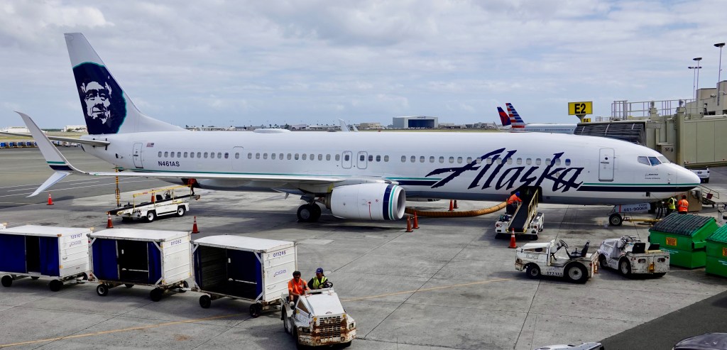 We landed a few minutes early in Honolulu and saw various planes from JAL, ANA, Delta, American and this cool Alaska Airlines 737.