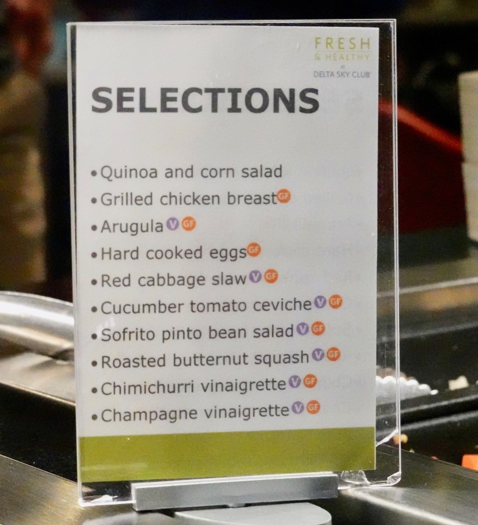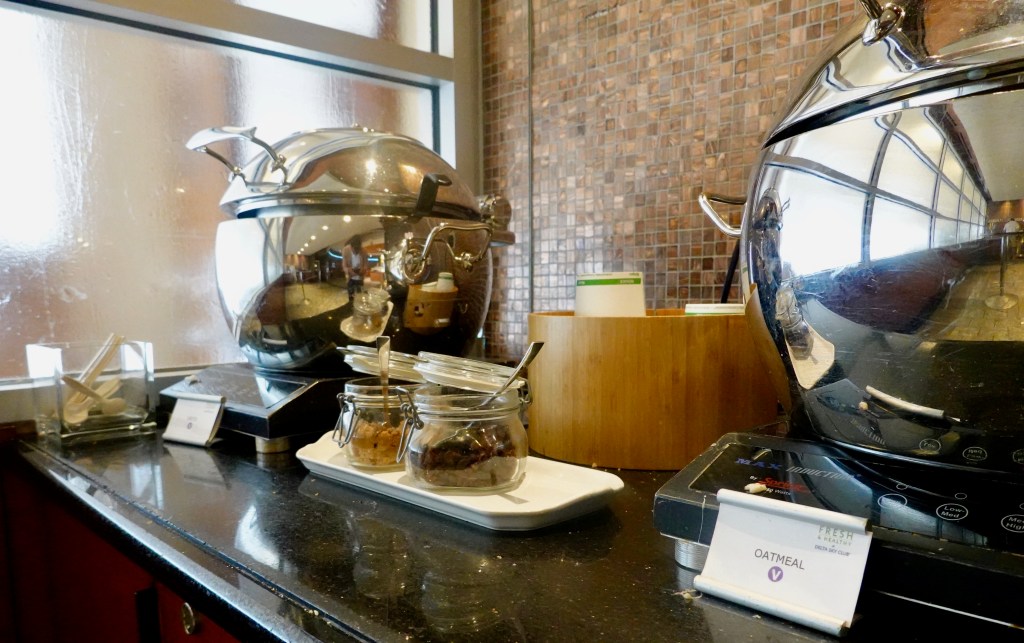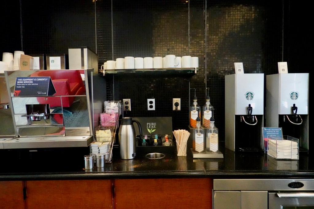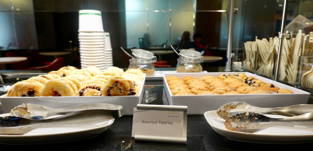 There were several coffee stations throughout the lounge, including canisters of Starbucks coffee, and Starbucks coffee machines that made espressos and cappuccinos. They also have the syrups and various types of milk to choose from. I’m a fan and as far as I’m concerned, Delta beats the majority of lounges when it comes to their coffee selection.