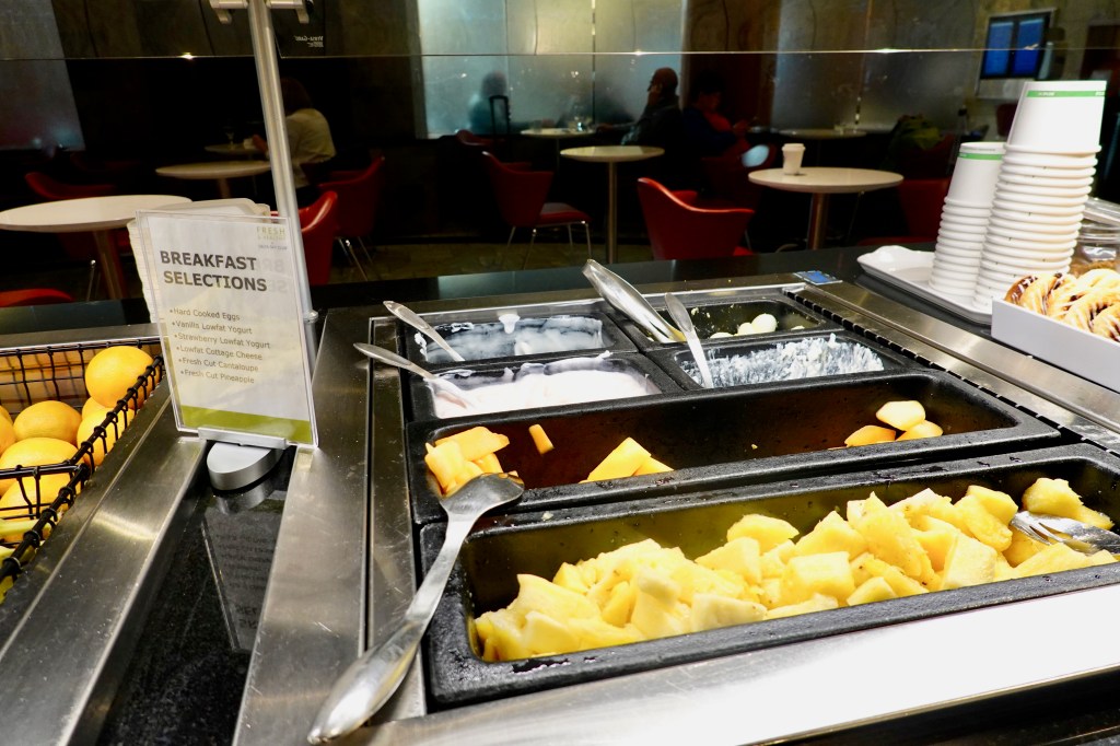 First, this Sky Club needs a little TLC. If you’ve seen the renovated Sky Clubs in New York or Seattle, you will understand that this is not up to par. Fortunately, the sign at the bottom of the escalator suggests that a renovation is scheduled for 2020 so I’m looking forward to that day.