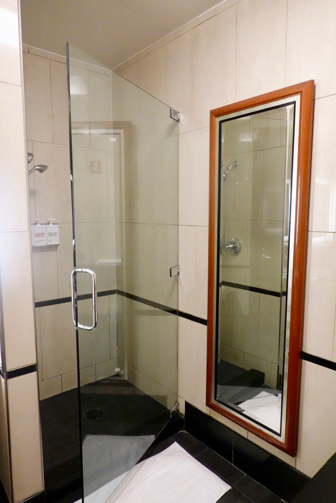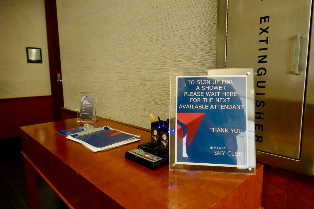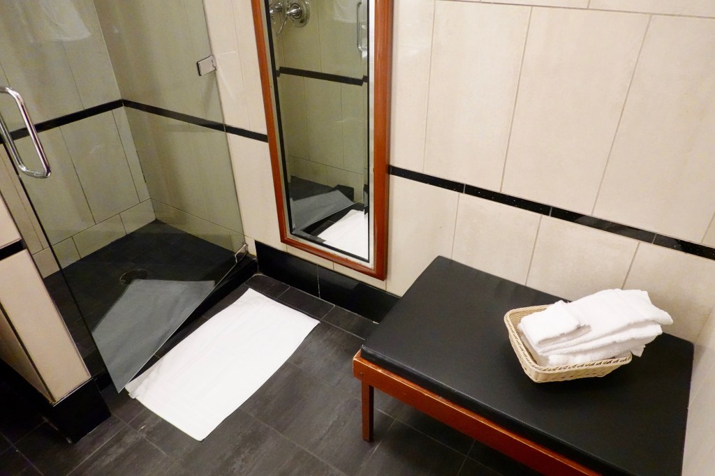 The SkyClub has several shower rooms. There was an attendant at the entrance to the showers that informed that me that a shower was immediately available but I had to sign in first. Although, I just wanted to take pictures, I went through the process. Name, date, time…done! She unlocked the door and I was in.