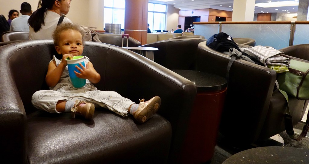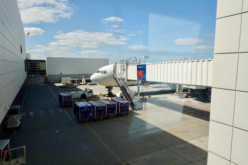 Typically, when you are flying business (or first class) you have access to a lounge. However, we were told that this flight was considered a domestic flight, so we did not have access to a lounge. Fortunately, I have the Business Platinum Card from American Express (Read More) that offers complimentary access to Delta Sky Clubs when I am flying on a Delta itinerary (even if I am flying a Delta economy ticket).