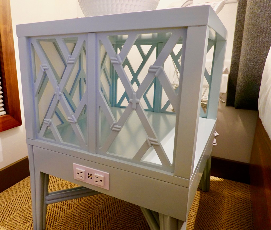 I appreciated the power plugs and USB ports built into the nightstand. You can never have enough charging stations.
