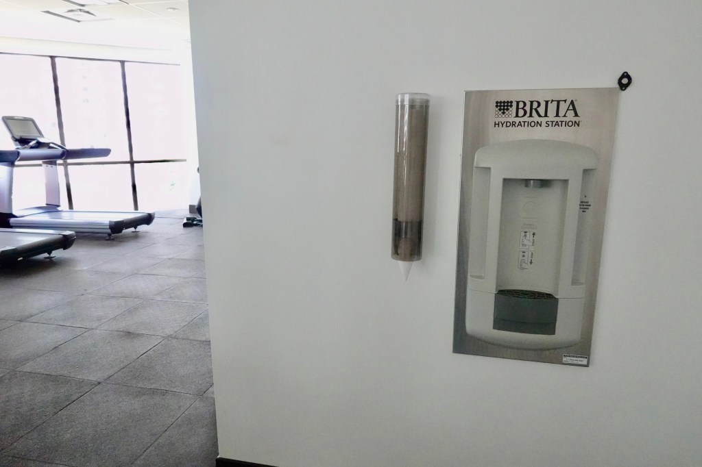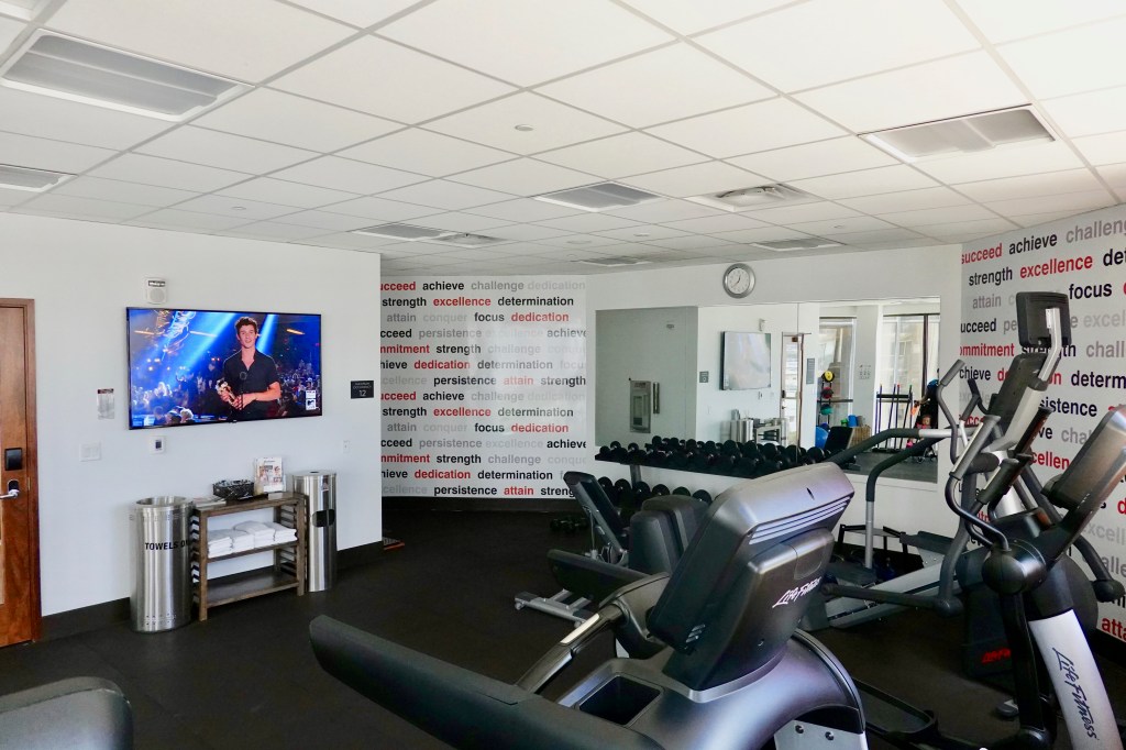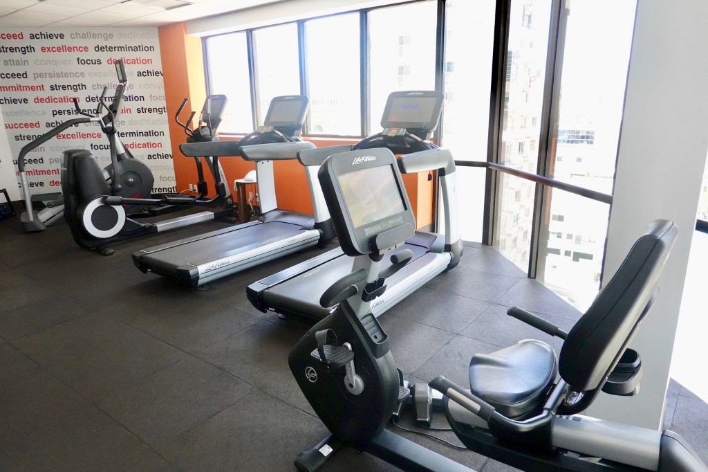 The fitness center was small. The equipment appeared new and included free weights and a few cardiovascular machines. In the corner, there was also a filtration station.