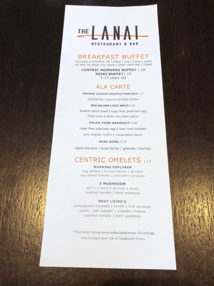 Breakfast in “The Lanai” have, both, an a la carte menu and buffet.