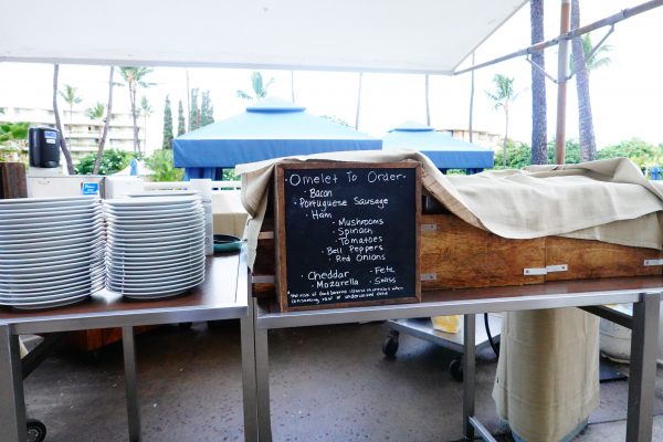 The next morning, we ate breakfast at Kea Lani Restaurant. Again, the menu prices justify the $90 total that I paid for breakfast and the upgrade. A waffle for $23? An omelet for $30?