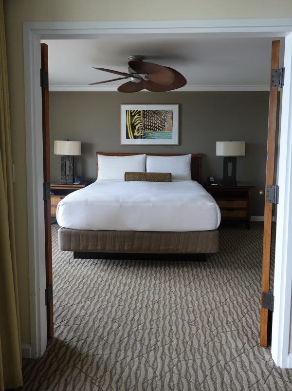 We visited the front desk, were presented with Hawaiian leis, and offered an upgrade from the Mountain View room (literally, facing a mountain) to the Oceanview Suite with King Bed and free breakfast for $30 total per night. Obviously, we accepted and you’ll see why in a few moments.