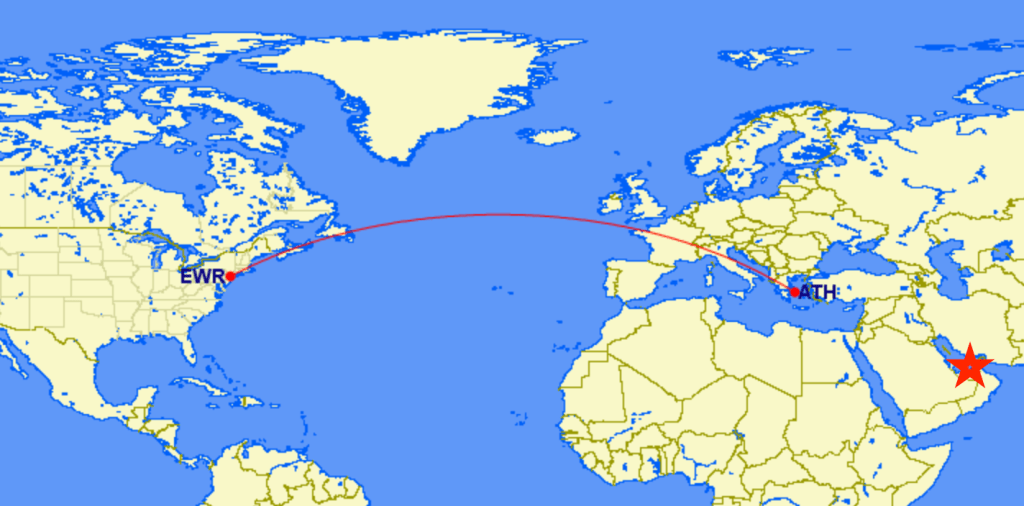 Yesterday, as I was transiting Newark airport, I strolled past the daily flight that Emirates Airline has scheduled between Newark (EWR) and Athens, Greece (ATH). This is a unique route because the aircraft is not, initially, returning to the carriers “home country.” In this example, Emirates will fly EWR-ATH and then continue to it’s own country of United Arab Emirates. This is known as a 5th freedom route.