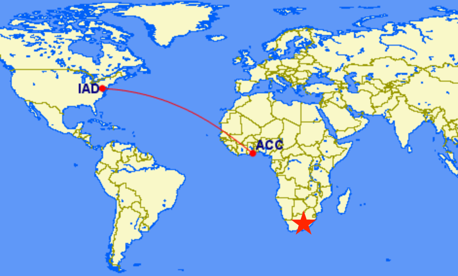 #4: Washington D.C. (IAD) – Accra, Ghana (ACC); South African Airways