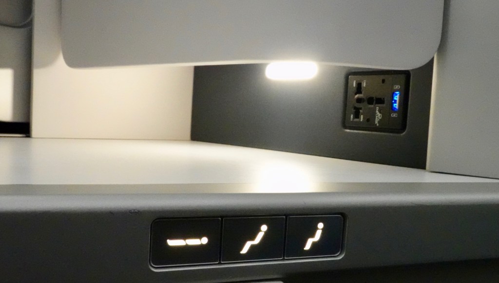 When I returned to my seat, I quickly reclined my seat into a bed and fell asleep. I found the bed to be very comfortable.