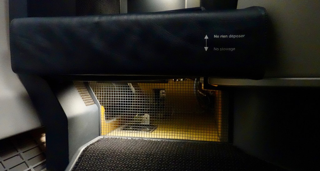Storage-wise, these seats were not great. There was no place to store a laptop, iPad, tablet or anything else larger than a cell phone. I do not like to put my valuables (computer, wallet, etc.) in the overhead compartment. Initially, I placed my laptop in the footwell but the space became cramped once I took off my shoes and attempted to manage the contents of my bookbag at my seat.