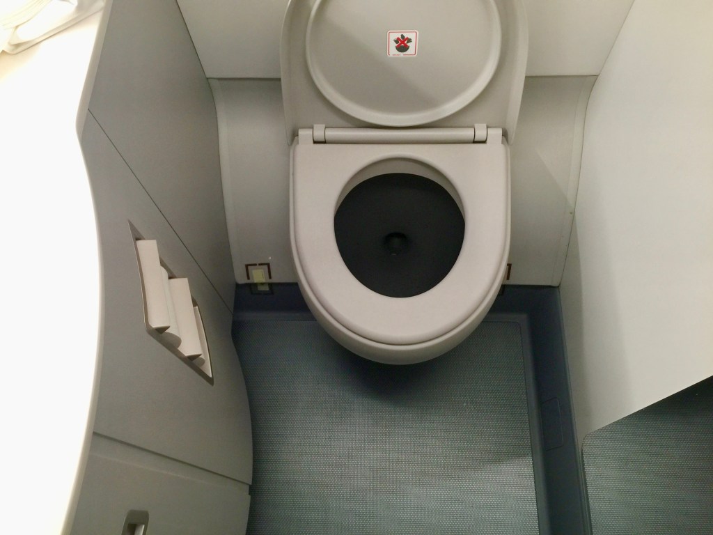 I checked out (both) lavatories. There was one located at the front of the cabin, and one at the rear of the cabin. They were both stocked with Air France pens and hand sanitizer wipes. They were nice and clean, but not particularly spacious.