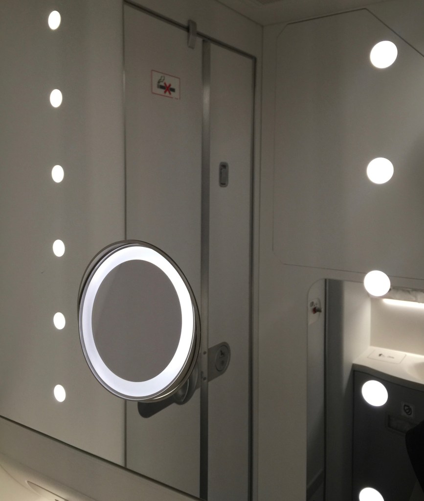 I do not know if the economy bathroom had the magnifying mirror in the vanity also but I thought it was a unique feature.