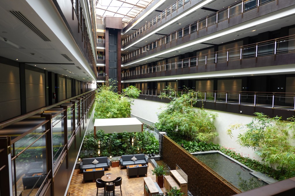 The hotel is built in a “L” shape and my room was located away from the hustle-and-bustle of the lobby. I used the elevator in the lobby to go to the 1st floor. At the end of the hall, I made a left into a very spacious wing of the hotel and noticed a plethora of plants and water features.
