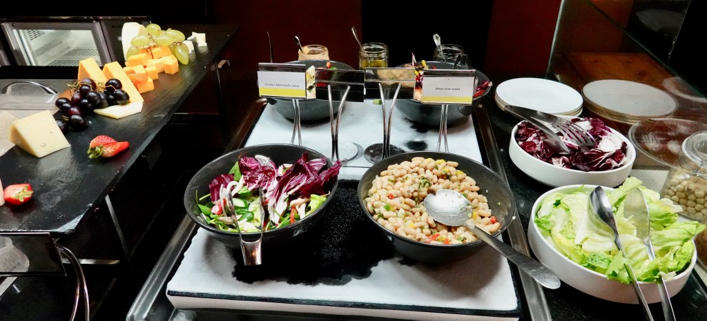 The club lounge offered food throughout the day. They have a great breakfast, lunch with salads, sandwiches and light bites.