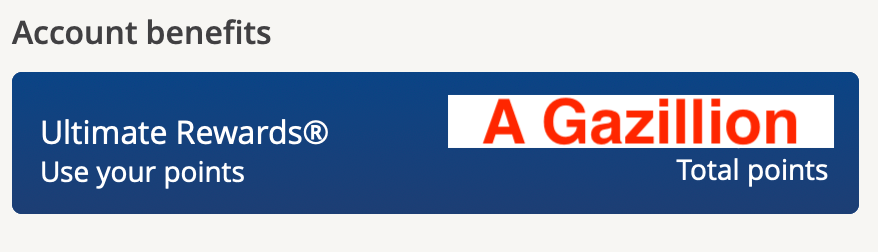 Step 1: Login to your Chase account and search for a box that contains your current points balance. It should look similar to the box below (and hopefully the balance is similar to the one I’ve given myself). 😉
