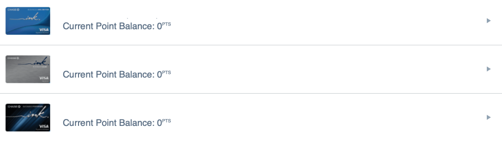 Pro Tip: You can pool your Ultimate Rewards points under one card. For example, in the photo above, I could move all of my points from the blue card and grey card to the black card (Chase Ink Preferred) and redeem them for travel.