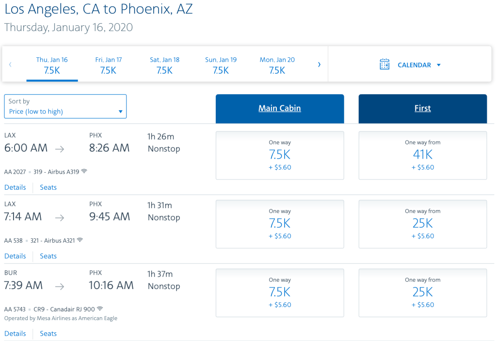 I searched for an award ticket from Los Angles (LAX) to Phoenix (PHX) for today (January 16th). According the website, I can book this ticket for 7,500 miles +$5.60 (one-way) and there is no mention of the last minute fee. Normally, it would say “7.5k + $80.60.”