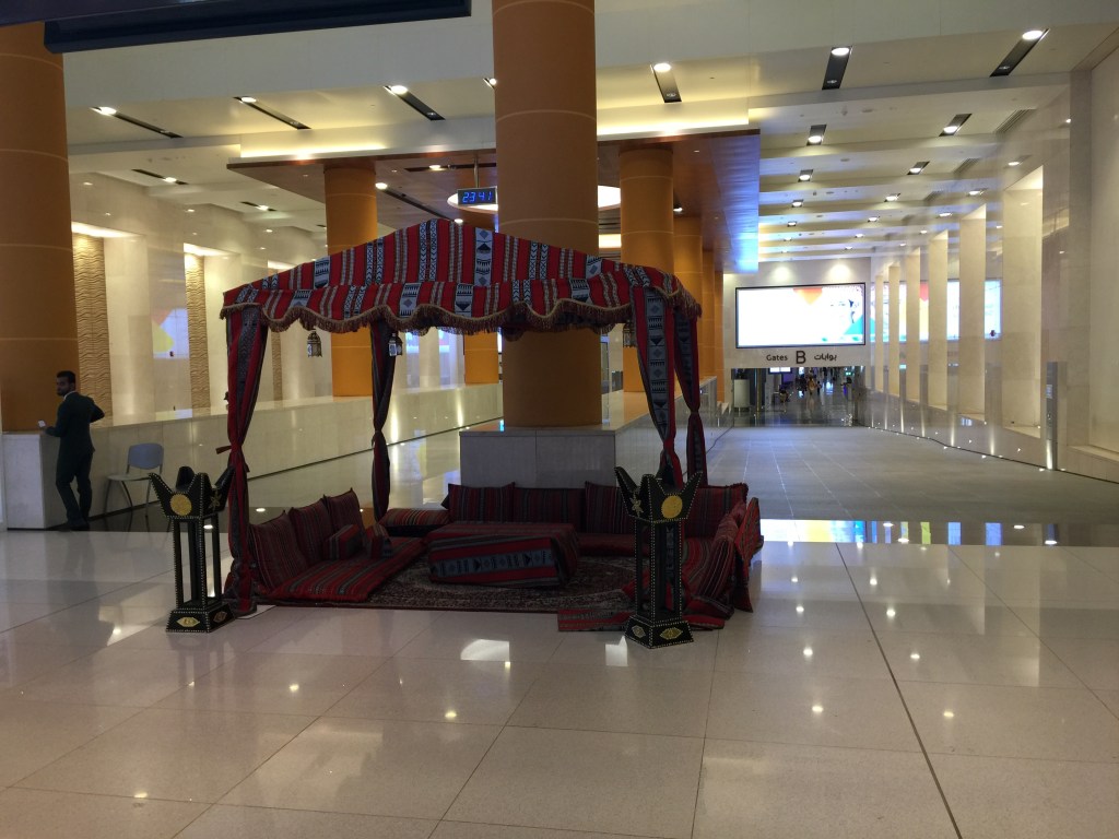 There were a number of airport amenities that I thought were great additions and incorporated cultural aspects. For example, I saw several Bedouin tents where solo travelers and families were relaxing.