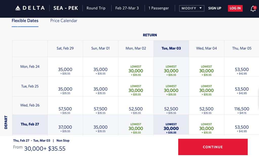 Delta flash sales can feature domestic or international awards, but my ears tend to perk up when I see a combination of distance and cheap price.