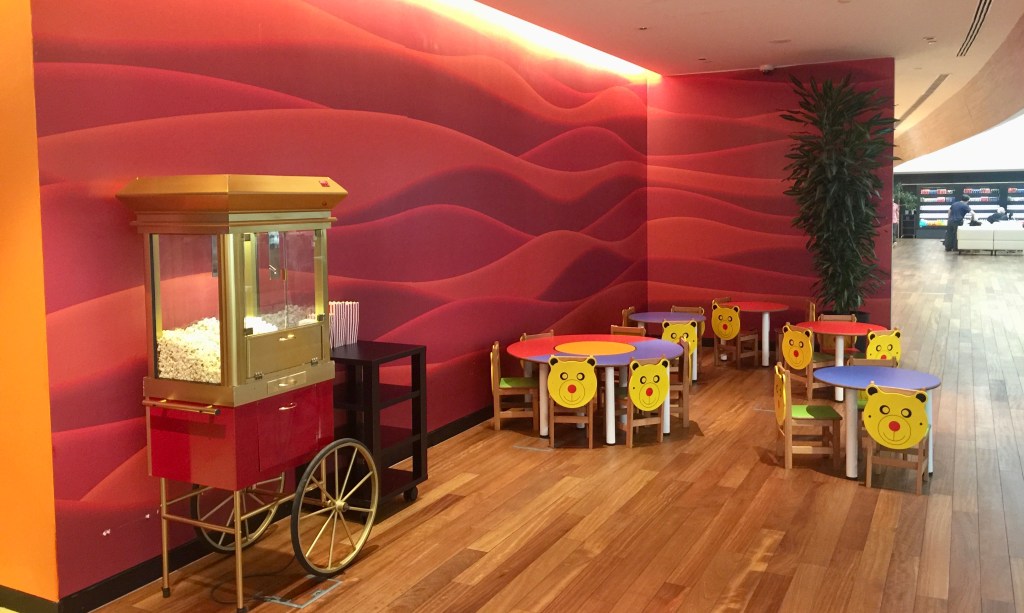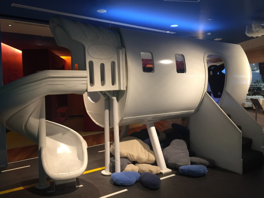 And at the far end of the lounge was a really cute play area for kids, including an awesome plane model with a driving simulator inside.