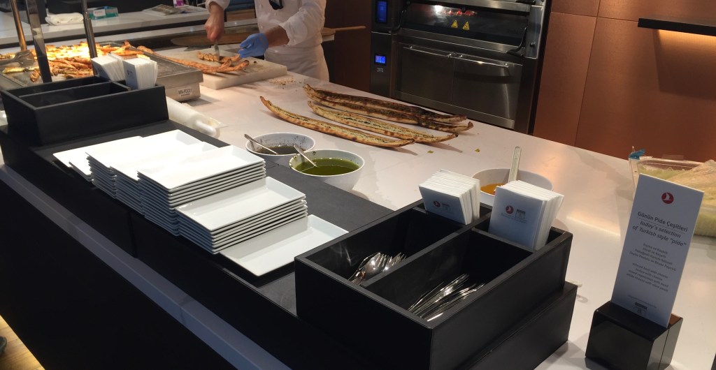 Turkish does a great job spreading out the food selection in the lounge. Generally, people like to sit near the buffet, so by putting food all over the lounge, they avoid that usual crowding problem.