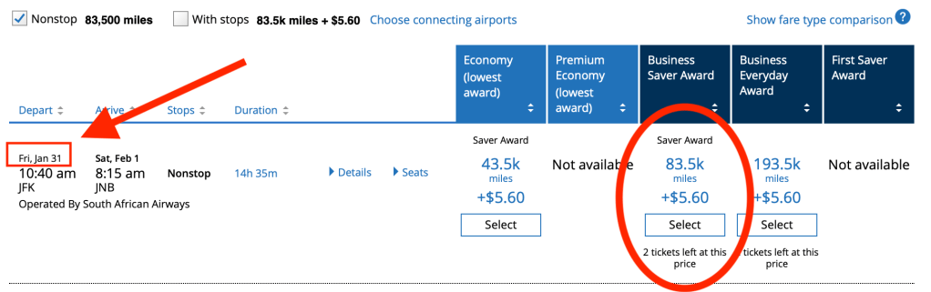 Additionally, there is some scattered award availability on the JFK-JNB route according to United. Although it’s not a lot, it’s definitely better than what it was – zero availability – when I wrote the original article. And you can leave as soon as tomorrow if you’d like…