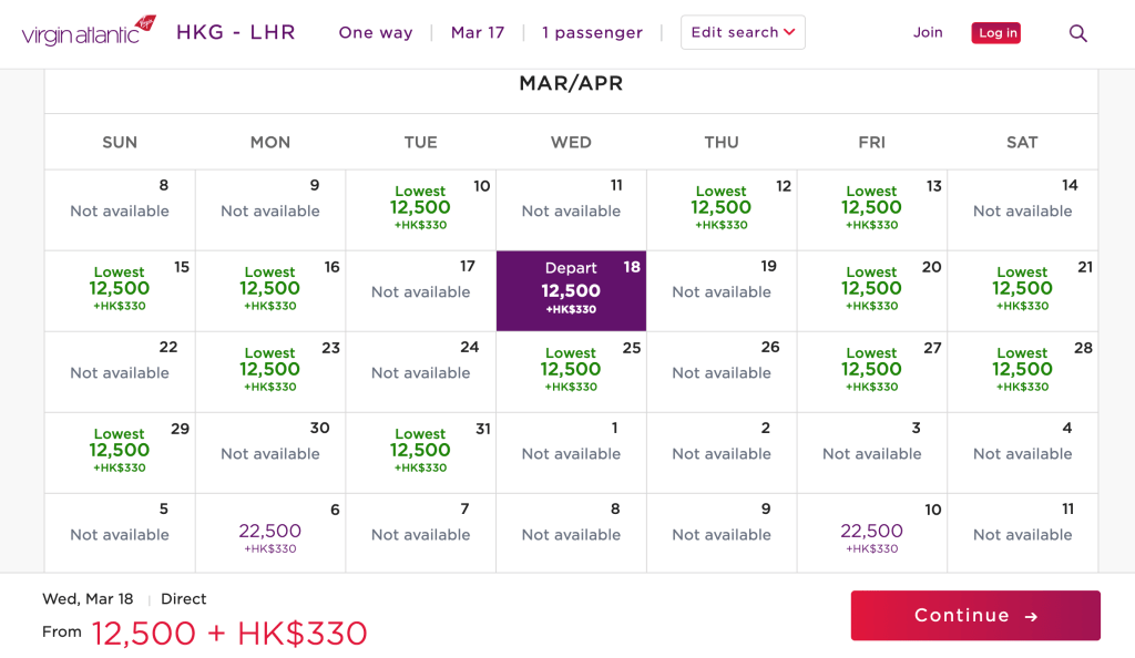 At the moment, Virgin Atlantic operates a 5x weekly flight between Hong Kong and London and when redeeming miles, it costs 12,500 miles + HK$330 (~$42 USD) for a one-way economy seat. That is a phenomenal redemption for a non-stop, 12.5-hour flight that was going to otherwise cost you $600USD.