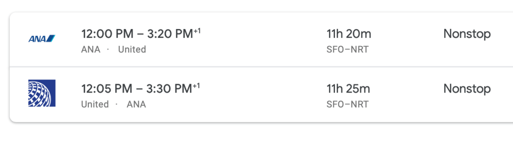 In other words, let’s say that you were flying from San Francisco (SFO) to Tokyo-Narita (NRT) today (9 March 2020) and that flight was canceled. You can NOT request a refund if United chooses to rebook you on the same flight tomorrow (10 March 2020) or schedules you on their partner ANA which leaves essentially at the same time because both flights leave in less than 25 hours.