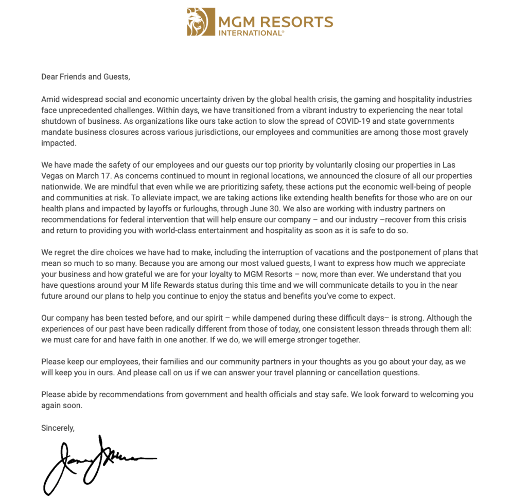As I mentioned before, many operators including MGM and Wynn announced proactively that they would close their casinos, however many Downtown casinos and Caesars properties on the Strip had planned to stay open. Now it seems their hand is being forced.