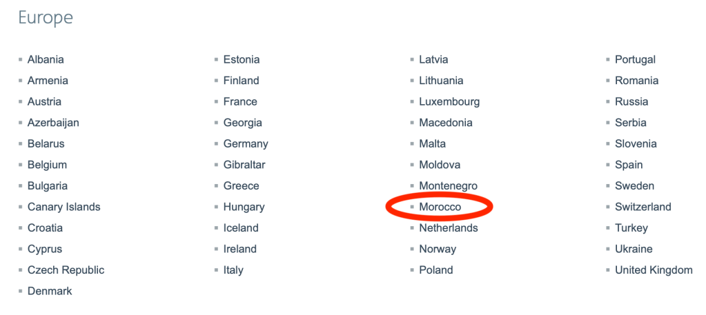 Well, there is great news as far as Morocco is concerned. American has “moved” Morocco to Europe according to their award chart regions.